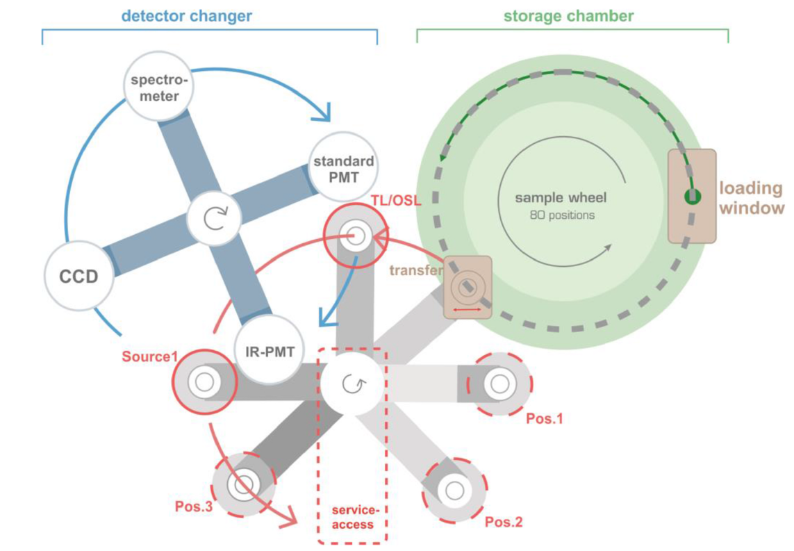 lexsygresearch于2012年推出,2025年重磅升級(jí),采用創(chuàng)新設(shè)計(jì),將樣品載體存儲(chǔ)與測(cè)量腔分離,有效避免了光串?dāng)_和輻射串?dāng)_,確保測(cè)量結(jié)果的準(zhǔn)確性。設(shè)備配備80位樣品存儲(chǔ)輪,支持測(cè)量過(guò)程中的樣品裝卸,實(shí)現(xiàn)真正的不間斷測(cè)量,升級(jí)了單顆粒應(yīng)用的EMCCD等功能,大大提高了實(shí)驗(yàn)效率。同時(shí),它擁有三個(gè)機(jī)械運(yùn)動(dòng)平面和五個(gè)樣品處理位置,可同時(shí)進(jìn)行多種操作,如激發(fā)、漂白、輻照和測(cè)量等,極大地提升了實(shí)驗(yàn)的靈活性。
