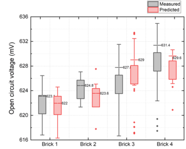 模型對(duì)HPM和CM硅磚開(kāi)路電壓預(yù)測(cè)平均絕對(duì)誤差分別為3.06mV和4.85mV;加權(quán)調(diào)和平均壽命提升了預(yù)測(cè)精度;模型能有效區(qū)分不同質(zhì)量硅磚,但對(duì)缺陷分布不均材料預(yù)測(cè)精度受限。