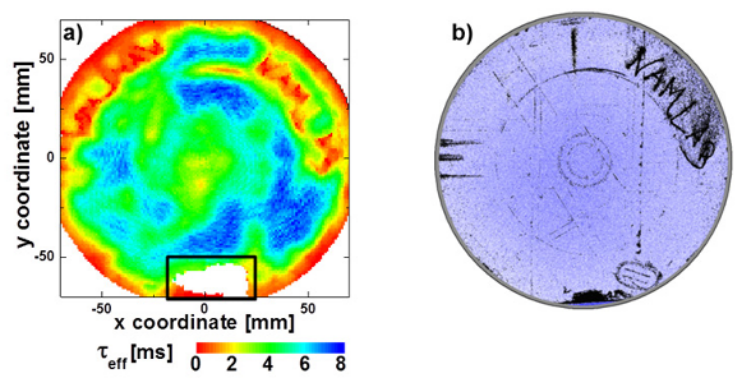 而在分析表面損傷的晶圓時,BiasMDP技術(shù)揭示出一個重要信息:載流子壽命的不均勻性主要是由化學(xué)鈍化的退化引起的,具體表現(xiàn)為界面缺陷密度的變化。MDPmap設(shè)備精確測量的壽命數(shù)據(jù),為這一結(jié)論的得出提供了準(zhǔn)確依據(jù),讓研究人員對表面損傷影響鈍化性能的機制有了更深入的理解,為解決實際生產(chǎn)中的問題指明了方向(如圖 4和5)。
