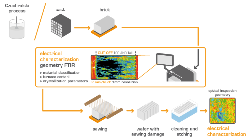 該系統(tǒng)包括一個數(shù)據(jù)庫和統(tǒng)計數(shù)據(jù)評估,可用于自動確定精確的切割位置,以提高成品率。用于材料質(zhì)量監(jiān)控,爐選擇和工藝改進。