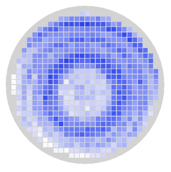 通過裝備一個具有映射階段和雙晶體的Omega/Theta衍射儀,可以測量晶體表面某一反射的搖擺曲線映射。圖像顯示的結(jié)果,這種映射的碳化硅晶圓。