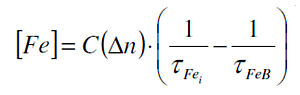 在高摻雜濃度的硼摻雜硅中,當(dāng)它用于光伏應(yīng)用時(shí),幾乎100%的電活性鐵以FeB對(duì)的形式存在。在有足夠能量的光的情況下,這些電子對(duì)可以在Fei和b中解離。這個(gè)過程是可逆的,一段時(shí)間后所有的FeB電子對(duì)都重新結(jié)合。FeB和Fei有不同的復(fù)合性能,因此解離對(duì)壽命有影響。在這種效果下,鐵的濃度可以通過以下方法確定: