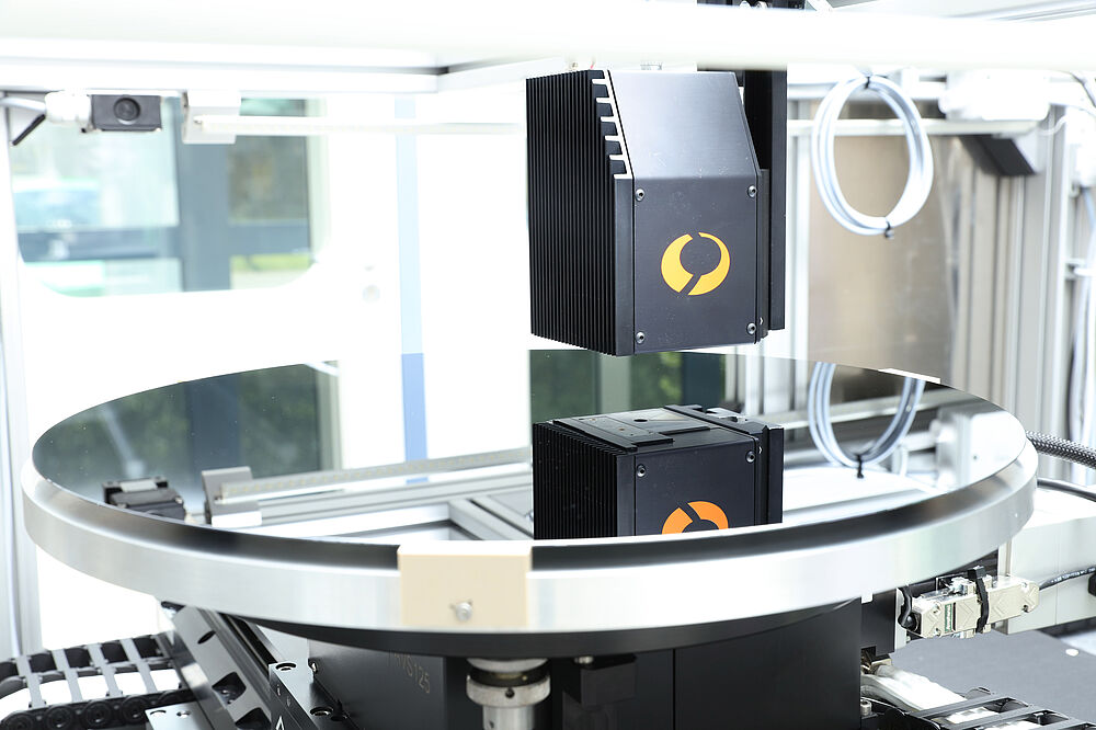圖3.在SEA4KET項(xiàng)目的可行性評(píng)估活動(dòng)中,少數(shù)載流子壽命測(cè)量頭(MDP傳感器)和450毫米晶片。©Photo: Kurt Fuchs/Fraunhofer IISB