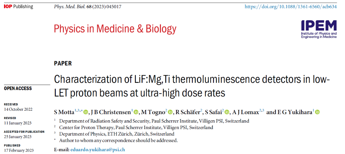 文章來源:https://doi.org/10.1088/1361-6560/acb634導(dǎo)語在FLASH放射治療(超高劑量率放療)領(lǐng)域,質(zhì)子束的劑量測量一直是技術(shù)難點(diǎn)。近期,瑞士保羅謝勒研究所團(tuán)隊(duì)在《PhysicsinMedicine&Biology》發(fā)表重要成果,驗(yàn)證了LiF:Mg,Ti熱釋光探測器(TLD)在超高劑量率質(zhì)子束中的可靠性,并創(chuàng)新性提出窄束流測量方案。研究中,lexs